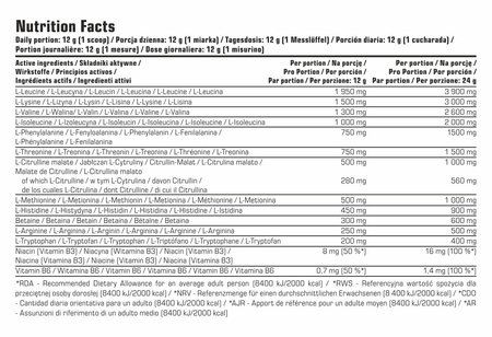 Аминокислоты EAA Perfect от 7Nutrition 480гр - это современная пищевая добавка, разработанная для спортсменов и физически активных людей, которые заботятся о быстром восстановлении, поддержке адаптации к тренировкам и поддержании мышечной массы тела. Он содержит полный профиль незаменимых экзогенных аминокислот (EAA), то есть тех, которые организм не может синтезировать самостоятельно и которые должны поставляться извне – из диеты или добавок.