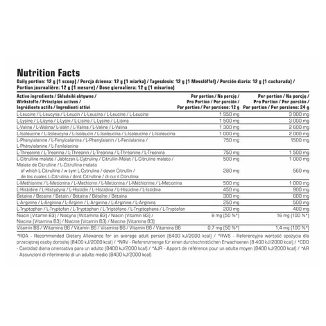 Формула Аминокислот EAA Perfect от 7Nutrition 480гр обогащена малатом L-цитруллина, бетаином безводным и комплексом витаминов группы В, которые синергетически увеличивают анаболический потенциал препарата, влияют на эффективность тренировки и способствуют улучшению параметров здоровья. Благодаря точно подобранным пропорциям активных ингредиентов, EAA Perfect обеспечивает функциональную поддержку как в период наращивания мышечной массы, так и во время сокращения жировых отложений. Добавка характеризуются очень хорошей растворимостью и ценовой приемлемостью.
