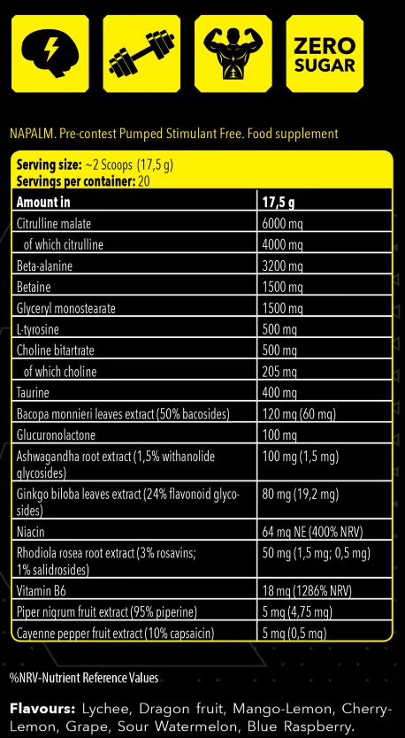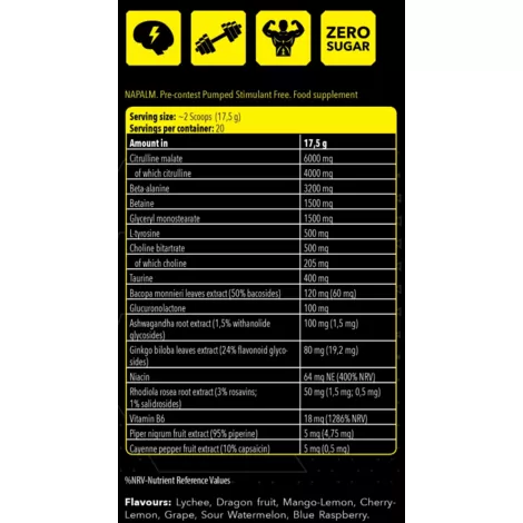 FA Napalm Pre-Contest Pumped 350 г — популярный предтренировочный комплекс от Fitness Authority, в который на этот раз добавлены пампинговые вещества, цель которых только одна — максимально наполнить мышцы кровью! Pre-Contest — отличный безбустер, способствующий сильному увеличению мышечной накачки. Продукт идеально подходит для тренировок по бодибилдингу, в которых мы хотим добиться максимального роста мышц. Огромная мышечная накачка позволит вам увеличить приток питательных веществ, аминокислот и кислорода, что будет способствовать стимуляции гипертрофии мышц.