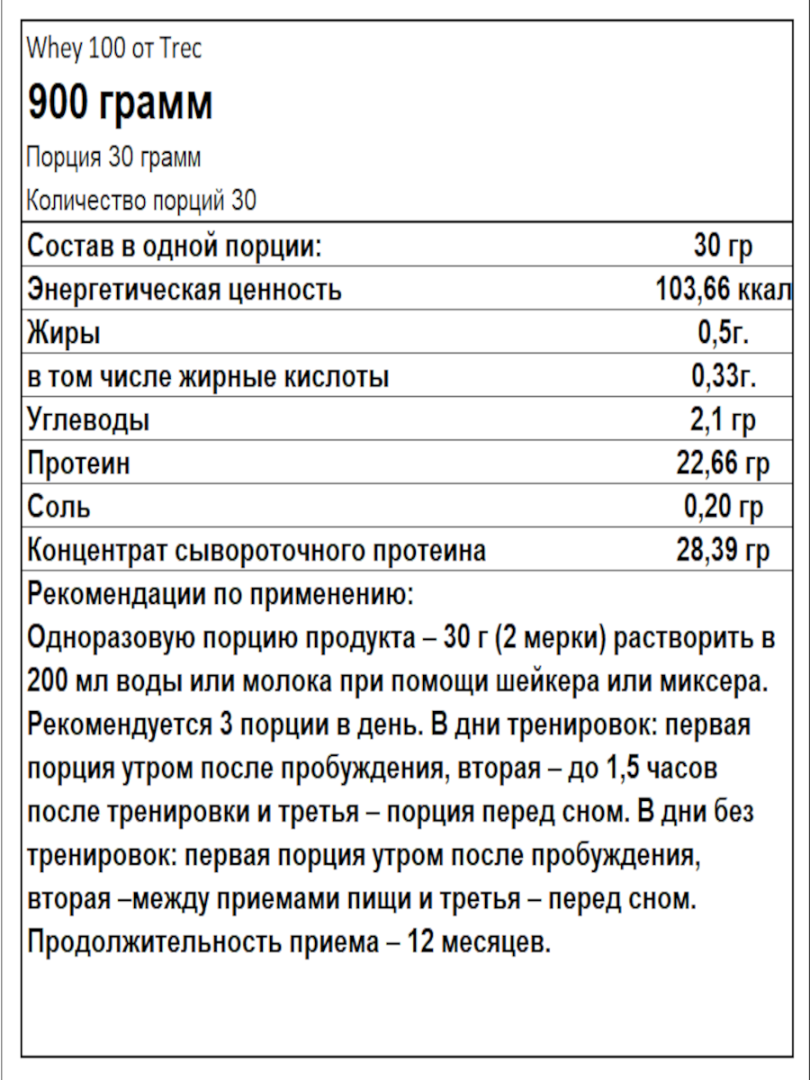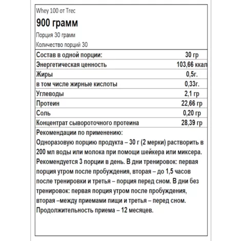 Рекомендации по применению WHEY 100 от Trec Nutrition: