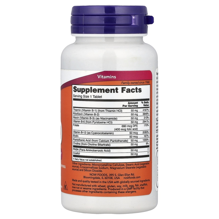 Комплекс витамин В B-50 от NOW Foods 100 таб: